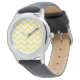 El hip hop y el moderno Chevron Watch. Este reloj fresco presenta un patrón de zag de cremallera de chevron en amarillo y blanco. Añadir texto a este diseño para darle un toque personal.