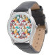 Este reloj tiene un diseño moderno de mediados de siglo de triángulos dispersos, algunos con agujeros, en colores retro.