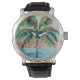Una versión abstracta de la palmera con trazos verdes, azules y rojos oscuros. Artista : Silvia Vassileva