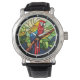 Reloj De Pulsera Tropical Kaleidoscope" - Stained Glass Parrot