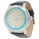 Te encantará el atractivo de este reloj con una cara de tono doble turquesa y perla. Personalizar para cambiar los colores de los números (el color predeterminado es turquesa) o eliminarlos por completo.