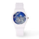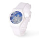 Los ángeles blancos y plateados descansan sobre un cielo nocturno azul índigo. A la izquierda aparece una estrella bajo la brillante palabra "twinkle". Purpurina en la pintura le da a este ángel la pintura de la magia de un brillo. Esta es una gran imagen de ángel para usar durante las vacaciones como Navidades o Año Nuevo. Haz diseños personalizados de guardian angel watch con tus mensajes personales y/o fotos. Utilice el botón "personalizar". ¡El arte de ángel de la guarda hace grandes regalos personalizados de reloj de pulsera para personalizados!