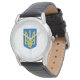 Patriotic Ukrainian coat of arms. Coat of Arms of Ukraine. Lesser Coat of Arms of Ukraine, the so called Tryzub. A stylised trident symbol in gold on a background shield of blue.