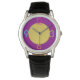 Este reloj es para personas con personalidades audaces porque realmente destaca. Con grandes números coloridos y una cara morada de dos tonos y dorada, prácticamente grita la moda hacia adelante.