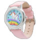 Reloj De Pulsera Unicornio arcoiris con cielo azul claro y corazón