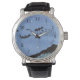 Una acuarela crepúsculo de una colonia de murciélagos saliendo de su cueva para cazar la noche bajo un cielo estrellado adorna este fresco reloj de Halloween!