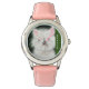 ¡Este es un reloj de acero inoxidable para niños! (4-12) Esta es una correa de cuero rosa. ¡Viene con varios colores! Resistente al agua! ¡Viene con la batería! Un año de garantía. ¡He puesto en la cara mi pintura original de un perrito Adorable Westie! ¡Es dulce y cariñoso! ¡¡Que tengas un día de malva!!