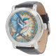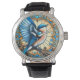 Reloj De Pulsera Vibrante pájaro azul encaramado en vidrio manchado