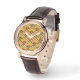 Vieiras chinas, o patrón de olas Reloj de correa de cuero, tradicional en el trabajo textil y de esmalte, en oro de mostaza rica, marrón chocolate y crema, acentuado con marrón de cacao