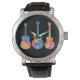 DISEÑO GUITAR contemporáneo y colorido en un estilo de arte pop retro inspirado en los años 60. Tres instrumentos de cuerdas del rock, jazz y pop persuasión para músicos, guitarristas y amantes de la música.