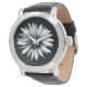 Este elegante reloj en blanco y negro presenta una sencilla imagen en blanco y negro de un girasol. Una adición encantadora a cualquier armario.