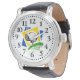 Este moderno reloj de pulsera de golf cuenta con un tee con una pelota y un club a punto de golpear una cara blanca con una banda de cuero negro. Es perfecto para el amante del golf en tu vida que vive por tiempo.