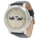 Reloj de moda con bigote divertido. El bigote retro en silencio hace un gran regalo de broma para cualquiera. El bigote italiano del manillar Spaghetti, para el hombre gracioso o sólo el que usa un bigote italiano o de manillar en la peluquería. Antecedentes de papel rústico vintage. Incluye líneas y números romanos para marcar cada incremento de cinco minutos.