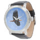 Águila calva volando en la cara decorativa de reloj. Un reloj único añade un toque elegante al reloj analógico clásico.