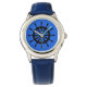 Rueda del barco negro. Color de fondo en la cara elegida para coordinar con el azul de la banda y el dial.