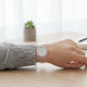 This watch captures the Wellness Waters aesthetic through the use of transparent materials that evoke the purity of icy water. The transparent silicone strap and case create a lightweight, modern look, perfect for those following the Cold Beauty trend. The clean white dial features numbers in a soft lavender shade and initials at the center, offering a delicate and professional contrast. It is a minimalist accessory that transforms timekeeping into a moment of visual clarity.