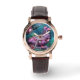Reloj De Pulsera Whimsical Floral Duck Purple Teal Personalized