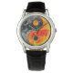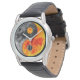 El reloj de cuero negro protector de la corona masculina con la foto de una llama y un yin yang de agua en la cara. El es un reloj de personalizable. Se puede agregar cualquier texto o imagen.