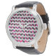 Reloj De Pulsera Zebra Chevron negro y rosa caliente