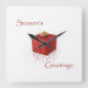 Diseño de imágenes digitales con un tema de color rojo y blanco con una variedad de imágenes, formas, patrones, estilos y fuentes personalizados en este "Reloj de saludos de temporada" único. Este color y diseño atractivo complementa a cualquier Navidad Decoración del Hogar o como el regalo ideal de Navidades para el coleccionista de Navidades o miembro de la familia que lo tiene todo!