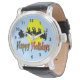 El Santa's Sleigh Watch presenta un fondo nevado azul claro, el Sleigh de Santa con silueta de reno que vuela frente a una luna brillante. El texto decorativo rojo es Felices Fiestas. (Los números de Watch se pueden borrar si prefieres tu reloj sin ellos.) Perfecto para llevar esta temporada navideña o como regalo para los Navidades. ¡Elige el estilo y el color de tu reloj! Estilos para hombres, mujeres y niños. Borrar los números de reloj; Haga clic en Personalizar - Haga clic en la "X" junto a los números de reloj.