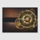 Antiguo, fantásticos relojes con engranajes de oro y latón sobre un fondo marrón y oxidado. Estilo Steampunk.