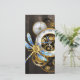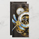 Diales antiguos con artes de oro y latón, decorados con libélula mecánica sobre fondo marrón, rayado. Steampunk.