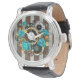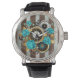 Reloj de vapor y Rosas turquesa a rayas