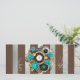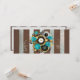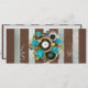 Reloj de época con estampado, adornado con joyas, manos de la hora de oro y números latinos con rosas turquesa sobre fondo marrón y rayas. Estilo Steampunk.