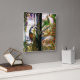 En este gran reloj de pared se encuentra la espléndida cristalera de estilo Art Nouveau Tiffany, la reproducción de un pavo real y aves loro.