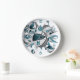 Este lindo reloj de pared con temática de baloncesto del chica presenta una "explosión" de baloncesto de tamaño variado verde azulado, gris y blanco y formas estrella grises y verde azuladas con números de cara de reloj sobreyacentes - número de monólogo o camiseta del atleta personalizar - por katz_d_zynes