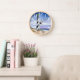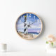 Un original cuadro acuático de Anne Ormsby adorna este reloj.