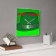 Un derby verde cerró con una banda gorra plateada, con trébol verde alrededor que es brillante y colorido. Eso está en un reloj de pared.