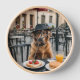 Captura el encanto y el humor de esta adorable escena con un elegante perro usando fedora y gafas, disfrutando tranquilamente de un desayuno repartido en un café francés en la acera. Con tortitas, tostadas y un vaso de jugo de naranja, esta imagen mezcla elegancia y comedia en una instantánea única que es perfecta para impresiones, posters o contenido de medios sociales que se destacan con personalidad e ingenio.