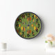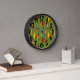 Este reloj de pared tiene un diseño moderno de diamantes de mediados de los años 70, y estallidos en un campo verde.