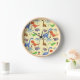 El diseño de los relojes murales del mundo Dino incluye lindos dinosaurios, volcanes y palmeras.