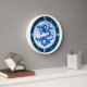Reloj en un patrón de dragón chino adaptado de porcelana antigua, en azul índigo profundo y blanco sobre un suave fondo giratorio de nubes