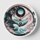 Inspirado en yin yang blanco y negro, verde azulado y rosa pálido con un toque de paisaje montañoso verde azulado y floral AI generada por el arte minx267