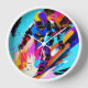 La imagen muestra a un esquiador colorido de descenso con casco. El fondo es una explosión dinámica de colores que crean una atmósfera abstracta, casi psicodélica. El uso de colores audaces y contrastantes y líneas nítidas le da a la imagen una sensación de arte pop, que recuerda a las obras de artistas como Roy Lichtenstein y Andy Warhol. Esta pieza enérgica y llamativa irradia energía y acción vibrante. Tiene el texto de personalizable 'Feel the Energy'. La resolución es de 5984x5984 ppi.