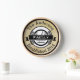 Reloj de patrón de estilo de logotipo retro con apellido y fecha de establecimiento personalizados