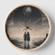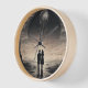 Step into a dreamlike world with this "Ethereal Journey" wall clock, where surrealism meets timeless elegance. The design features a mesmerizing scene of two silhouetted figures standing together, gazing into a vast, otherworldly landscape. Above them, a mysterious, floating jellyfish-like entity hovers in a cosmic sky, adding a touch of fantasy and intrigue. The monochromatic tones and intricate details make this clock not just a functional piece, but a captivating work of art that will enhance any space. Perfect for those who appreciate surrealist art, science fiction themes, or simply want to add a unique, artistic flair to their home or office. Let time melt away as you lose yourself in this extraordinary scene!