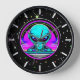Arte psicodélico neón que representa un platillo alienígena y volador. Contenido generativo.