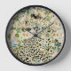 Una elegante huella de leopardo tropical. Una combinación de bonito de flores tropicales de verano y vida silvestre selvática. En crema, oro y azul.