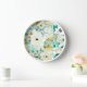 Reloj Flores blancas y turquesas de arte folclórico boni