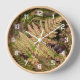Decorar un espacio vital con este reloj de pared con números blancos que muestra la foto de los helechos del bosque en varios colores de verde, rosa y amarillo durante la temporada de otoño. Seleccione el tamaño del reloj, el estilo y el color de la mano. Utilícelo para decorar una sala de estar, comedor, cocina, dormitorio o cualquier otra habitación.