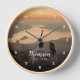 Crea un reloj especial de pared redondo o cuadrado personalizado con tu foto boda, monograma de nombre y fecha establecida. El diseño presenta tipos de letra modernos y sencillos colocados sobre la foto completa. Utilice las herramientas de diseño para elegir cualquier tipo de letra y color que coincida con el estilo de decoración de su hogar. Un reloj personalizado es una idea única de regalo para Navidades para abuelos, padres nuevos o un regalo divertido para recién casados que decoran juntos su primer hogar.