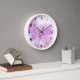 Un reloj con una hermosa fotografía con flores de cerezo rosas. Imagen soñadora con luces de bokeh y destellos.