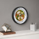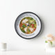 Funny relojes de pared de cocina con un gráfico de la sopa de pollo más realista de la abuela en segundo plano y marcas de la cara de reloj y texto que dice "Cocina de la abuela" que puedes personalizar si quieres.