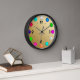 Reloj en doce piedras preciosas multicolores, con ambientes de punción dorada y un efecto 3-d elevado, sobre un fondo dorado cepillado, enmarcado y acentuado con negro