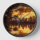 Una cálida, vívida y dorada puesta de sol refleja en las ondas del tranquilo y fluido lago.